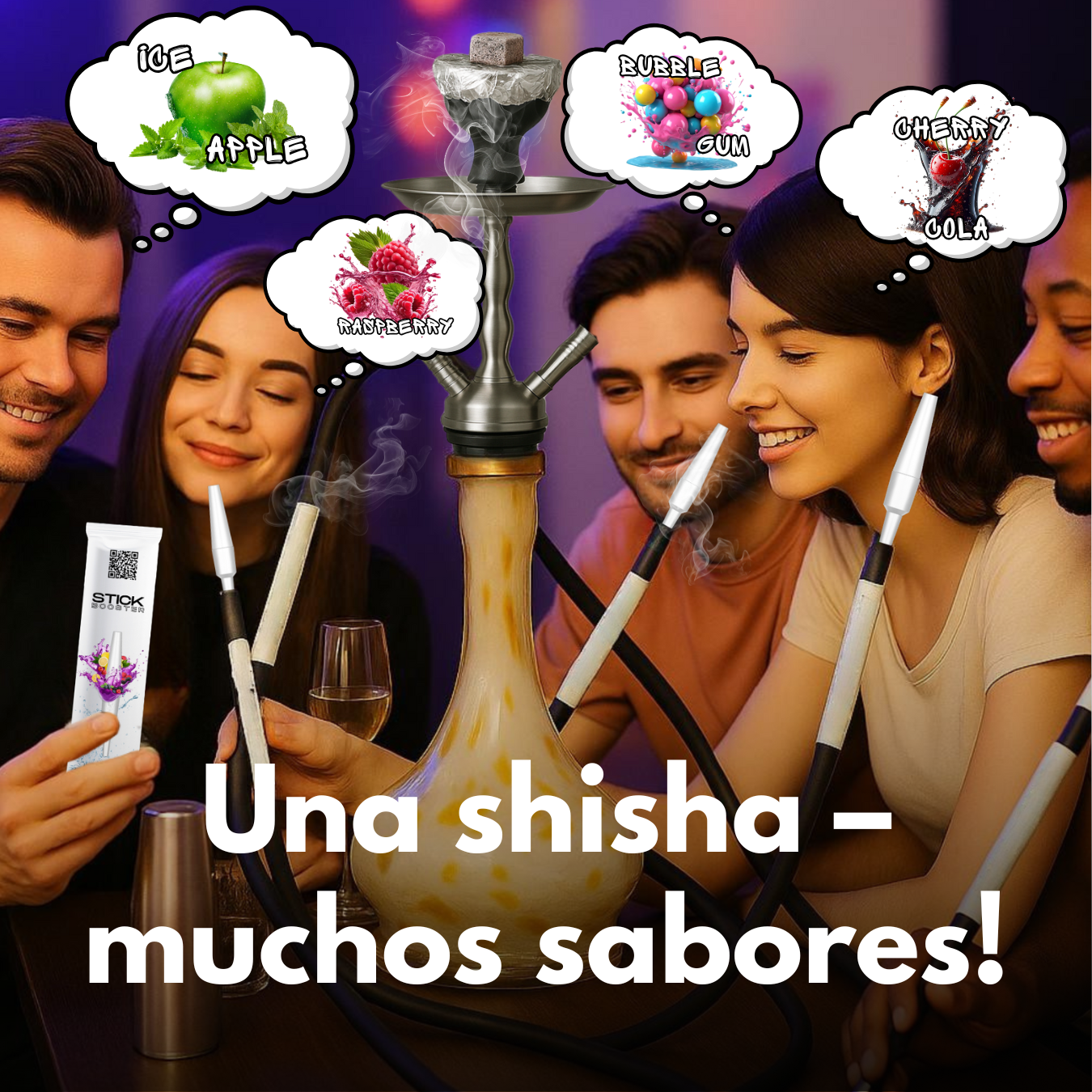 Disfruta de tu shisha con sus múltiples sabores junto a tus amigos. Cada uno con su sabor favorito de Stick Booster. Nuestro lema: ¡Una shisha, muchas delicias!